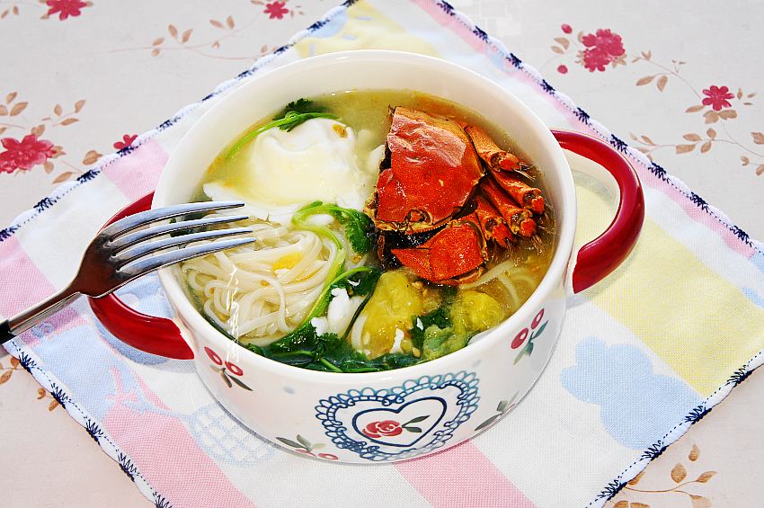 热汤面我家常吃,越冷越想吃,每次煮面汤汁都不剩,这次加了番茄,微酸的口感,特别开胃。做法极其简单,不用炝锅,食材随意搭配,扔进去的都是营养,加上荷包蛋和大闸蟹,能量满满,暖身暖胃,老人孩子都爱吃。
