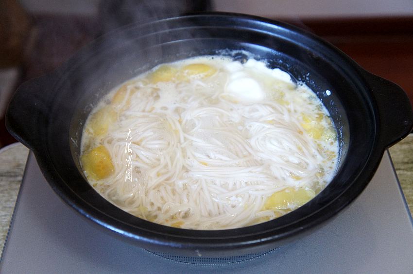 一通清理后,让我们来看看这款电陶炉是否好用。开机第一道菜,煮一锅热乎乎的热汤面,使用的是陶瓷锅,这锅有一定的厚度,家中以前的电磁炉都不能用,新产品一定要感受一下它的强大功能。