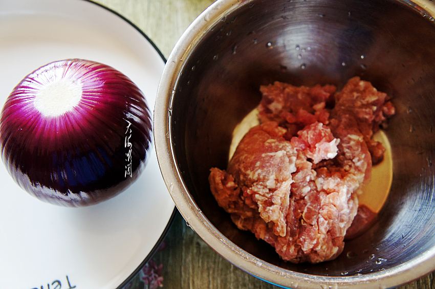 做法及步骤:1、准备食材,洋葱去皮洗净备用,猪肉馅是买现成的,也可以买肉回来自己加工成馅,一次还可以多做点,凉了也好吃。