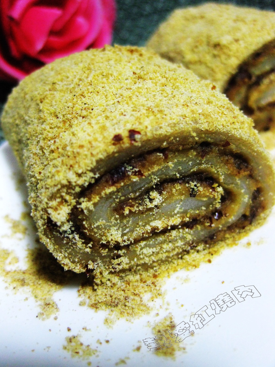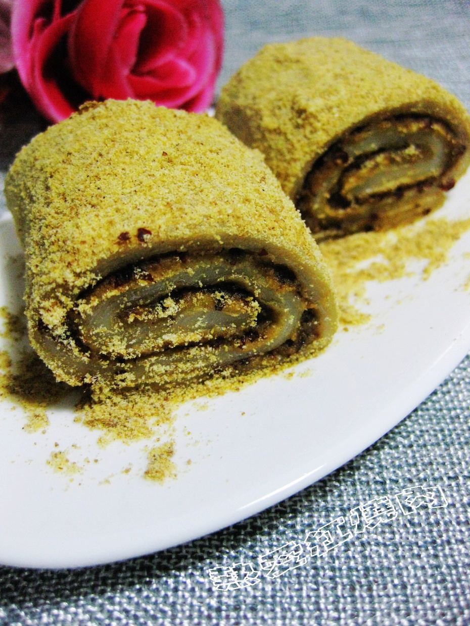 其实就这个直接就卷炒好的黄豆粉和红糖掺好了的粉也是非常好吃的。