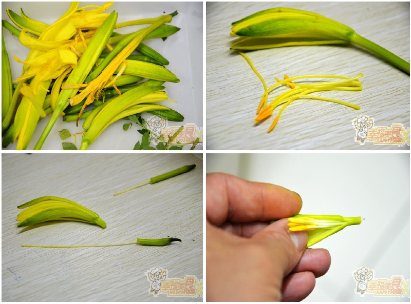 1、 先将黄花菜的花蕊去除掉,花蒂掰除掉;