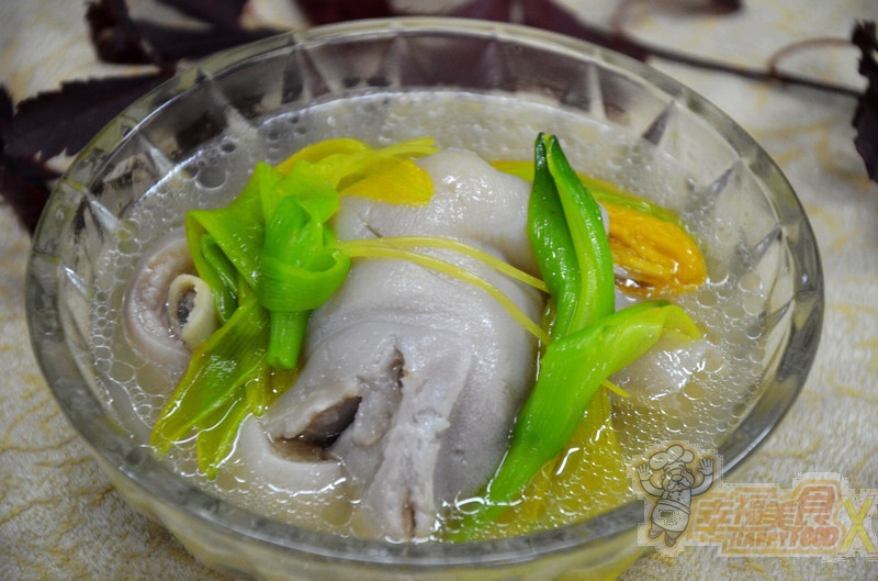 美食食材:猪蹄2只,新鲜黄花菜100克,大枣5枚,葱姜各10克