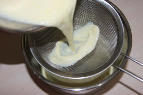 6.将拌好的布丁液过滤一遍,以得到更细致的溶液