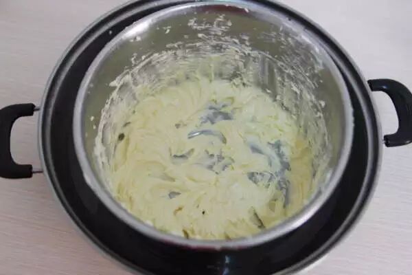 1,奶油奶酪隔水软化,搅拌至顺滑无颗粒