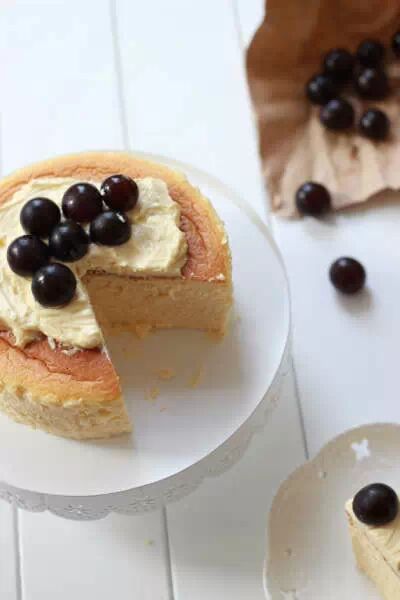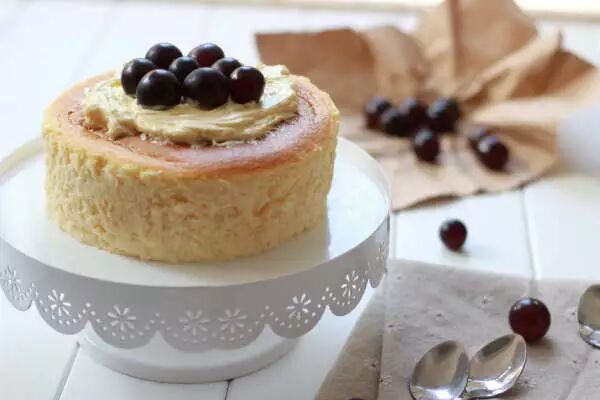 10,先用200°的高温烤20分钟,再将温度降底到150°烤40分钟表面微金黄即可。烤好的蛋糕室温放凉之后,放入冰箱冷藏3小时,最后表面随意抹上一些奶油霜,再用蓝莓装饰一下就可以了。