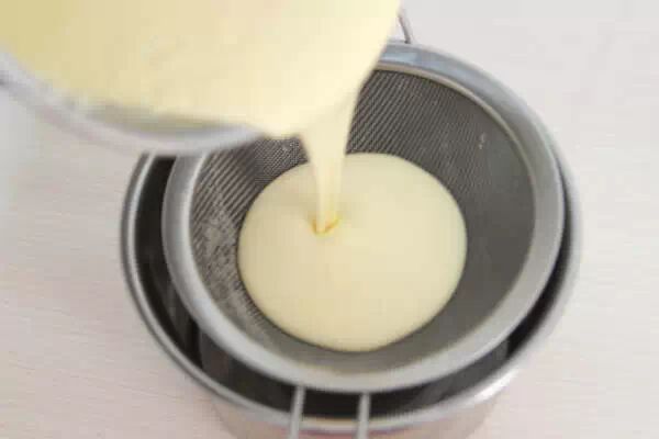 6,将蛋糕糊整体过滤一遍,得到更加细腻的蛋糕糊