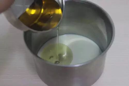 1, 提前分别 将豆浆和色拉油小火加热,然后室温放温热。再将二者慢慢混合均匀