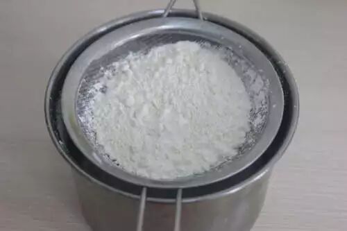 2, 低筋面粉、玉米淀粉混合后过筛到豆浆混合物中