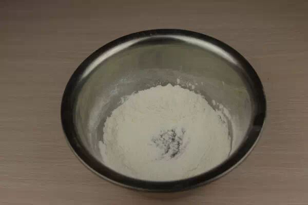 3.在面粉盆中挖出凹槽