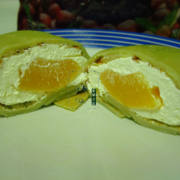 牛奶、鸡蛋、低筋面粉、糖粉、黄油、抹茶粉、动物性淡奶油、糖粉、黄桃。