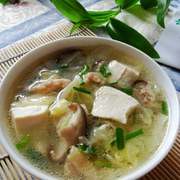 白菜、鸡腿、鲜香菇、豆腐、食用油、淀粉、盐、料酒、味精。