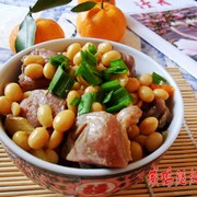 咸鸭腿、干黄豆、姜、干辣椒、八角、大蒜。