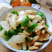 杏鲍菇、白菜梗、青椒、食用油、盐、味精、水淀粉。