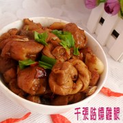 鸡腿、千张结、食用油、盐、料酒、干辣椒、八角、老抽、糖、桂皮、姜、大蒜瓣。