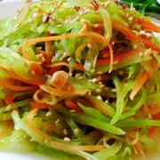 莴笋、胡萝卜、麻油、辣椒油、盐、鸡精、熟芝麻、熟花生碎。