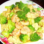 虾仁、鸡蛋、西兰花、盐、醋、醋、鸡精、胡椒粉、淀粉、黄酒。