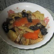 白灵菇、蘑菇、香菇、姬菇、黑木耳、胡萝卜、笋、油、盐、鸡精、麻油。