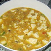 牛骨汤、切片牛肉、米线、香菜、盐、油咖喱、鸡精、盐。