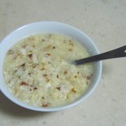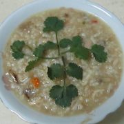 鸡汤、大米、鸡肉、鲍鱼、海参、鱼丝、蟹粉鱼、香菇、蘑菇、葱、姜、香菜、黄瓜。