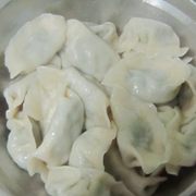 荠菜、青菜、肉末、盐、鸡精、油、面粉、温水。