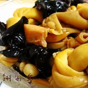 杏鲍菇、美白菇、百叶结、木耳、鸡腿肉。