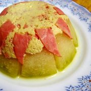 冬瓜、火腿片、豆腐、盐、白胡椒各。