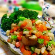 西兰花、杏鲍菇、胡萝卜、蔬菜高汤、蚝油、盐。