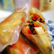 鸡腿肉、杏鲍菇、胡萝卜、葱白、香菜、糯米春卷皮。