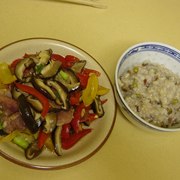 彩椒、鲜菇、大蒜、香葱、火腿肉、鸡汤、蚝油、鸡精、白胡椒粉。