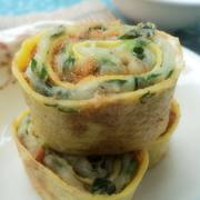 韭菜、盐、面粉、水、鸡蛋、肉松。