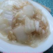 大白菜梗、淡虾米、蒜末、盐、淀粉水、色拉油。
