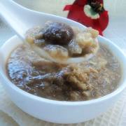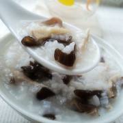 泡发黑木耳、猪肚、大米、盐、鸡精、清水。