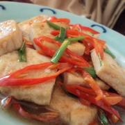 豆腐、红辣椒、葱绿段、蚝油、鱼露、胡椒粉、味极鲜生抽、白糖、鸡精、清水。