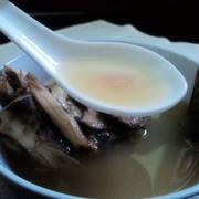 大米、糯米、红菇、鸭肉丝、鸭汤、清水。