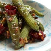 四季豆、蒜末、辣椒干、色拉油、盐、生抽、鸡精。