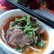 牛肉、豆芽、香菜、盐、鸡精、地瓜粉、郫县豆瓣酱、蒜片、姜片、糖、清水、料酒、色拉油、花椒、辣椒干。