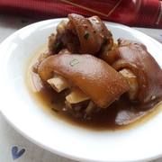 猪脚、姜片、蒜头、香叶、八角、辣椒干、色拉油、料酒、冰糖、盐、生抽、老抽、啤酒、清水、鸡精、葱花。