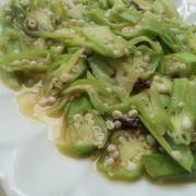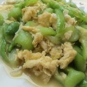 苦瓜、鸡蛋、蒜末、色拉油、盐、鸡精。