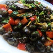 螺蛳、蒜粒、姜丝、香叶、甜红椒、香菜末、盐、辣椒粉、生抽、啤酒、清水、白糖、鸡精。