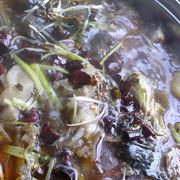 鲢鱼头、土豆、胡萝卜、大蒜、辣椒干、花椒、郫县豆瓣酱、盐、鸡精、淀粉、啤酒。