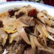猪腰、洋葱、辣椒干、姜丝、盐、白糖、生抽、啤酒、鸡精。