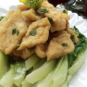 油炸豆腐泡、生菜、香葱、盐、白糖、蚝油、生抽、啤酒、清水、鸡精。