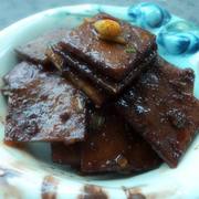 豆腐干、葱白、郫县豆瓣酱、孜然粉、花椒粉、五香粉、色拉油、白糖、盐、鸡精。