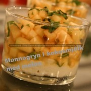 椰奶、粗粒小麦粉、牛奶、香瓜、薄荷叶、青柠、燕麦片、糖。