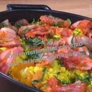 香米、冷冻豌豆、玉米罐头、藏红花、杏干、洋葱、辣香肠、橄榄油、香菜。