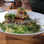 鸡胸肉片、红边莴苣、鳄梨、柠檬、油、番茄酱、新鲜罗勒、百里香、迷迭香、盐。