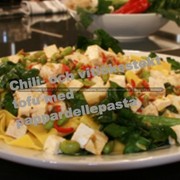 意大利面、红辣椒、洋葱、大蒜、菠菜、木棉豆腐、大豆、橄榄油、盐、胡椒。