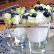 哈蜜瓜、酸奶、牛奶什锦、蓝莓、蜂蜜。