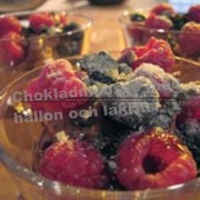 黑巧克力、可可、奶油、蛋清、砂糖、覆盆子、甘草糖果。