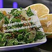 葡萄柚、蜂蜜、芥末、南瓜籽、松子、黄色葡萄干、刺山柑、生菜、橄榄油、新鲜薄荷。